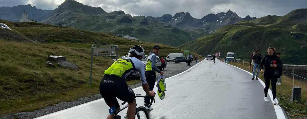 Am Sonntag läutete der Wecker schon um kurz nach 3 Uhr in der Früh, denn schon um 5 erfolgte der Start des Arlberggiro, wo Matthias Gusner und auch Patrick Syn am Start standen. Noch im Dunklen wurde der Arlbergpass hinter den Fahrern gelassen und die Kehren Richtung Stuben in Angriff genommen. Extrem gefährlich, da zu diesem Zeitpunkt auch noch der Regen einsetzte und der Nebel der Nacht das erste Tagelicht komplett schluckte. Am Weg ins Montafon wurde es endlich hell und Matthias war in der Spitzengruppe vertreten. Am Anstieg zur Silvretta Hochalpenstraße wurde das Feld von Schiffer A. auseinandergerissen und Matthias war zusammen mit Moran Vermeulen und 2 weiteren Fahrern. Vermeulen konnte dem Tempo von Matthias nicht folgen und fiel in die hintere Gruppe zurück. Oben angekommen wurde er von seinen Betreuern versorgt und mit einer frischen Jacke ging es durch Paznauntal hinaus und wieder zurück nach St. Anton. Nach einer kleinen Klopause wurde Matthias mit dem 12. Platz belohnt.